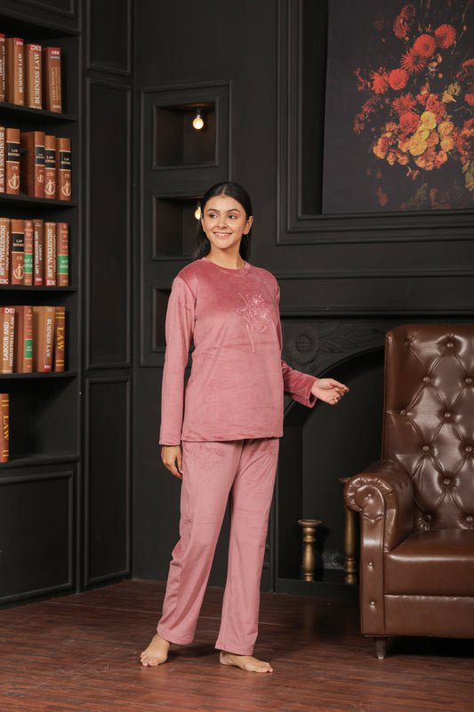 Kiza Women’s Round Neck Embroidered Night Suit