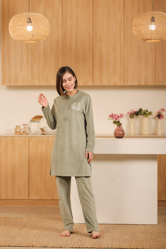 Kiza Women’s Henley Neck Embroidered Night Suit