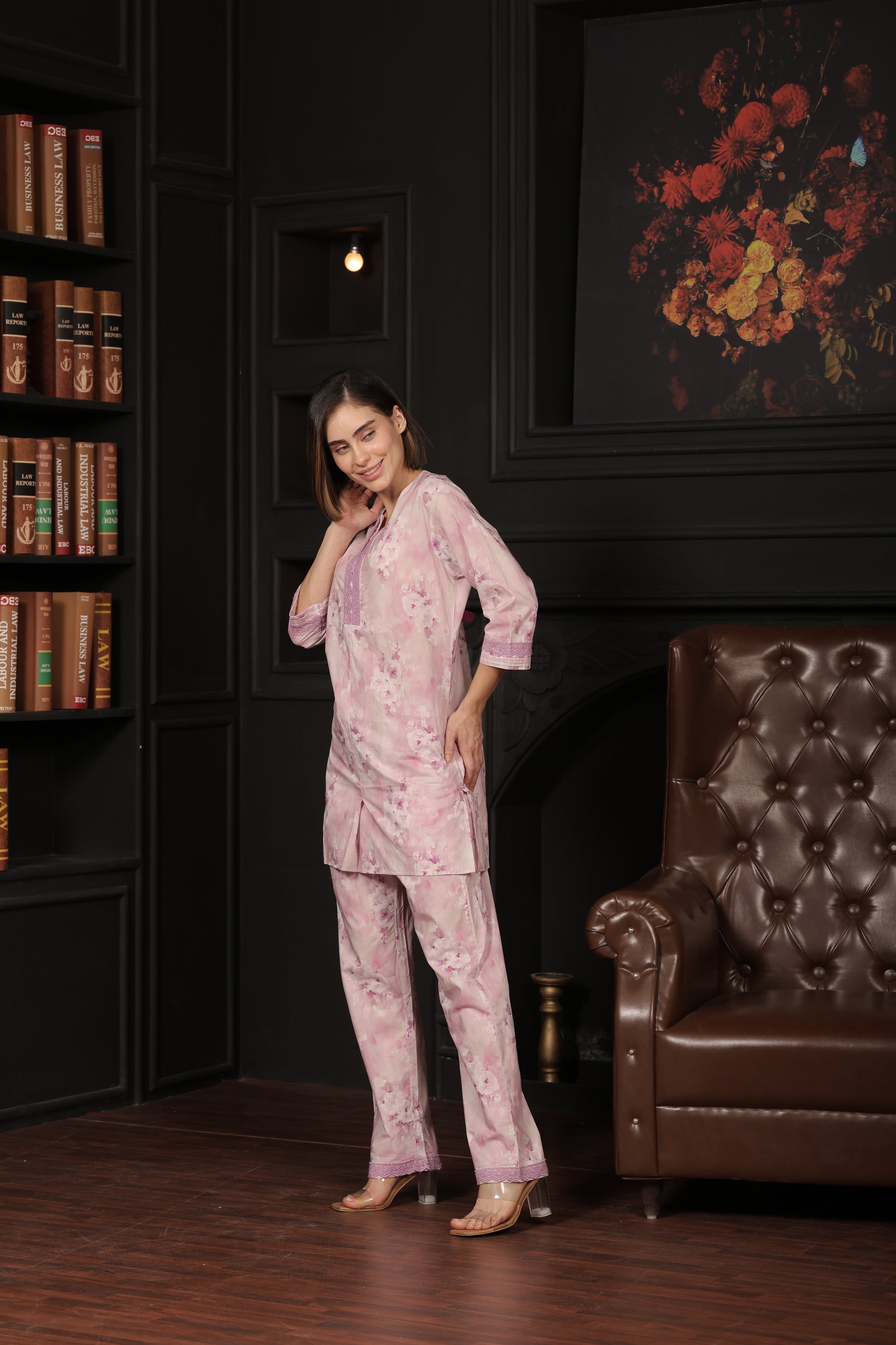 Cotton Co-Ord Set is the ultimate blend of breathable comfort and laid-back sophistication. Designed for modern women who love to stay effortlessly stylish, this co-ord set features a relaxed-fit top paired with easygoing pants — made entirely from imported premium cotton. Whether you're lounging at home, grabbing a coffee, or enjoying a casual day out, Mira is your trusted companion for comfort, confidence, and timeless charm.