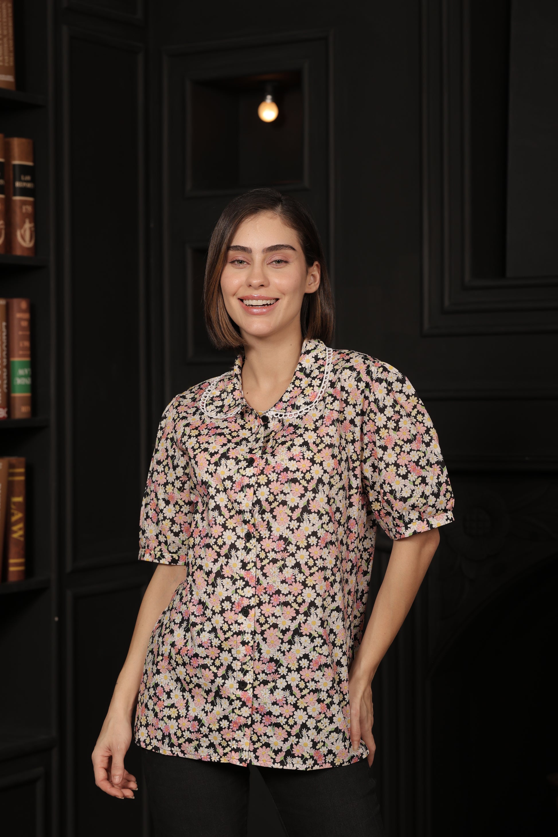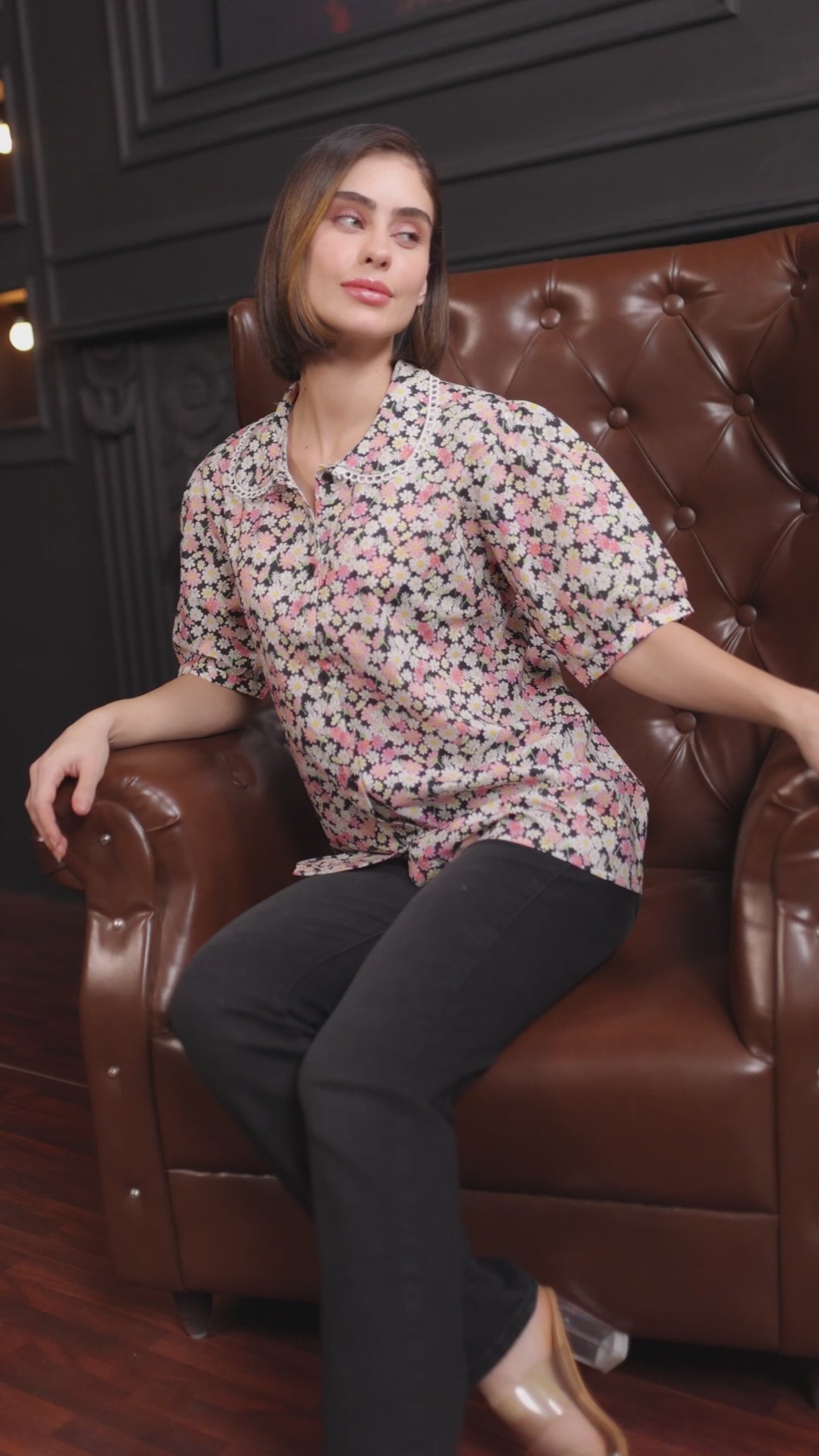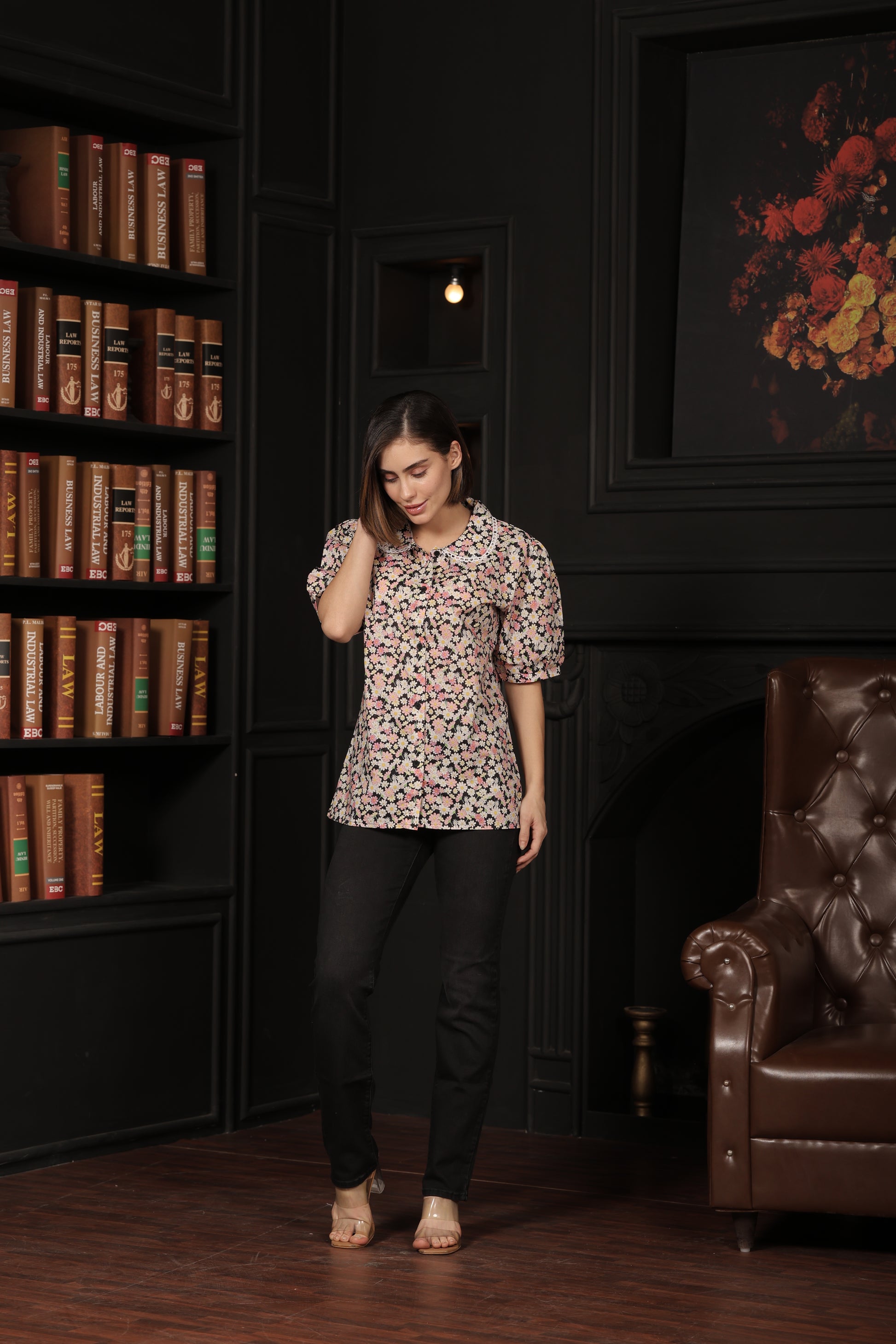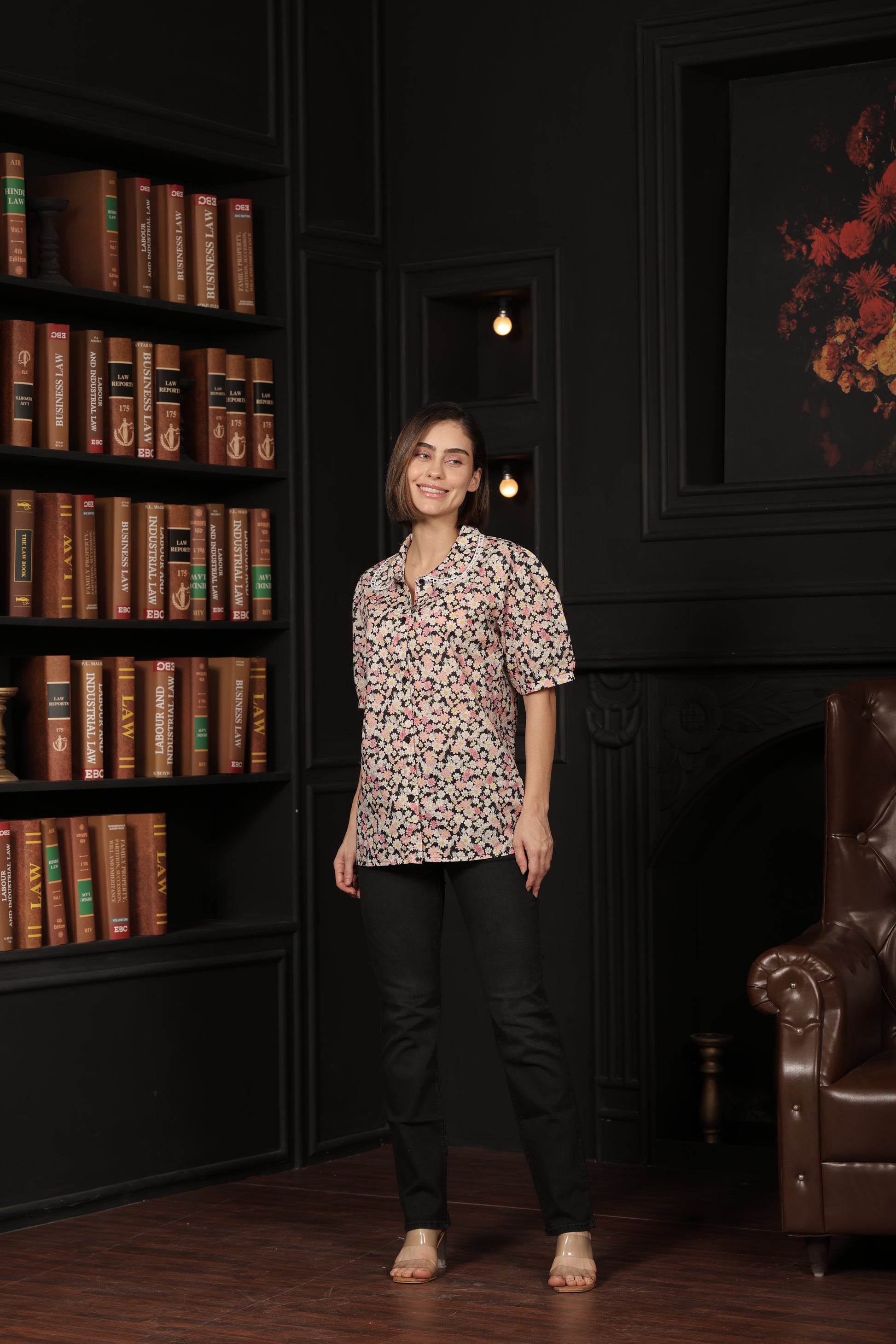 Add effortless elegance to your everyday wardrobe with this Black Printed Cotton Top, crafted from 100% woven cotton for a naturally breathable and lightweight feel. Designed to offer relaxed structure with a touch of sophistication, this top is perfect for all-day lounging, casual outings, or winding down in style.