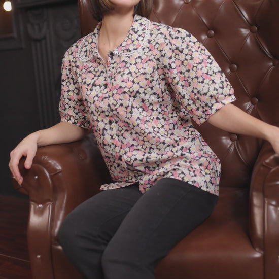 With its timeless black base and delicate all-over print, the top pairs seamlessly with lounge pants, shorts, or even denim — making it as versatile as it is comfortable. Whether you're enjoying a cozy day at home or heading out for errands, this easy-fit essential brings comfort and chic together in one classic piece.