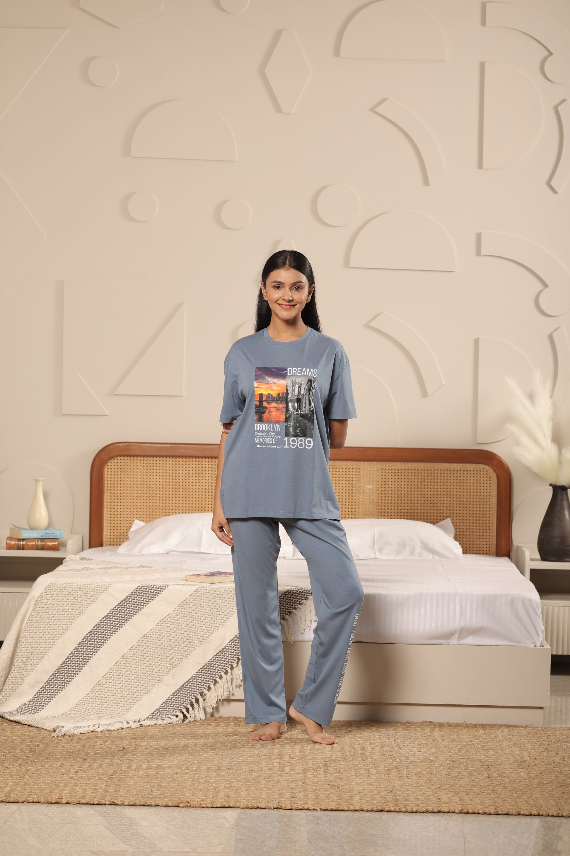 Meet the EcoEase Graphic Lounge Set, your all-day companion crafted for comfort with a conscience. Designed in a soft blend of sustainable TENCEL™ and flexible LYCRA®, this coordinated two-piece set effortlessly balances cozy wearability with visual appeal. The top features an inspiring cityscape graphic, while the bottoms deliver unrestricted comfort with a flattering straight leg and an uplifting quote detail. Whether you're powering through a creative day at home or stepping out for a laid-back coffee, this set is equal parts comfort, function, and flair.