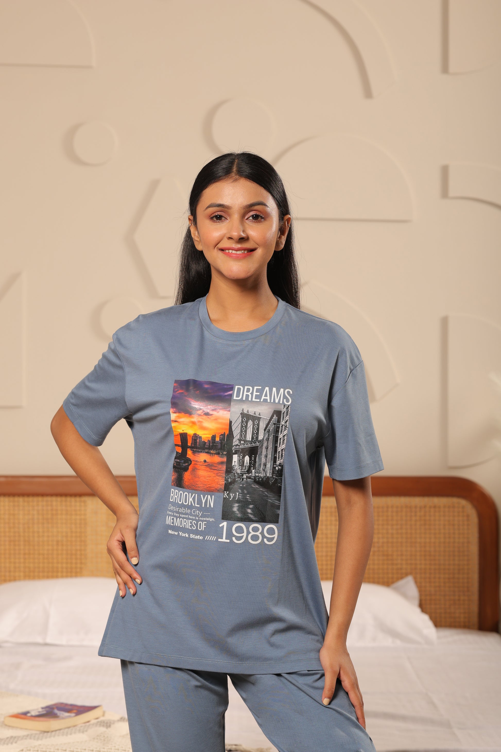 • Statement Graphic Top: Featuring a vibrant Brooklyn-inspired print with a nostalgic city vibe.