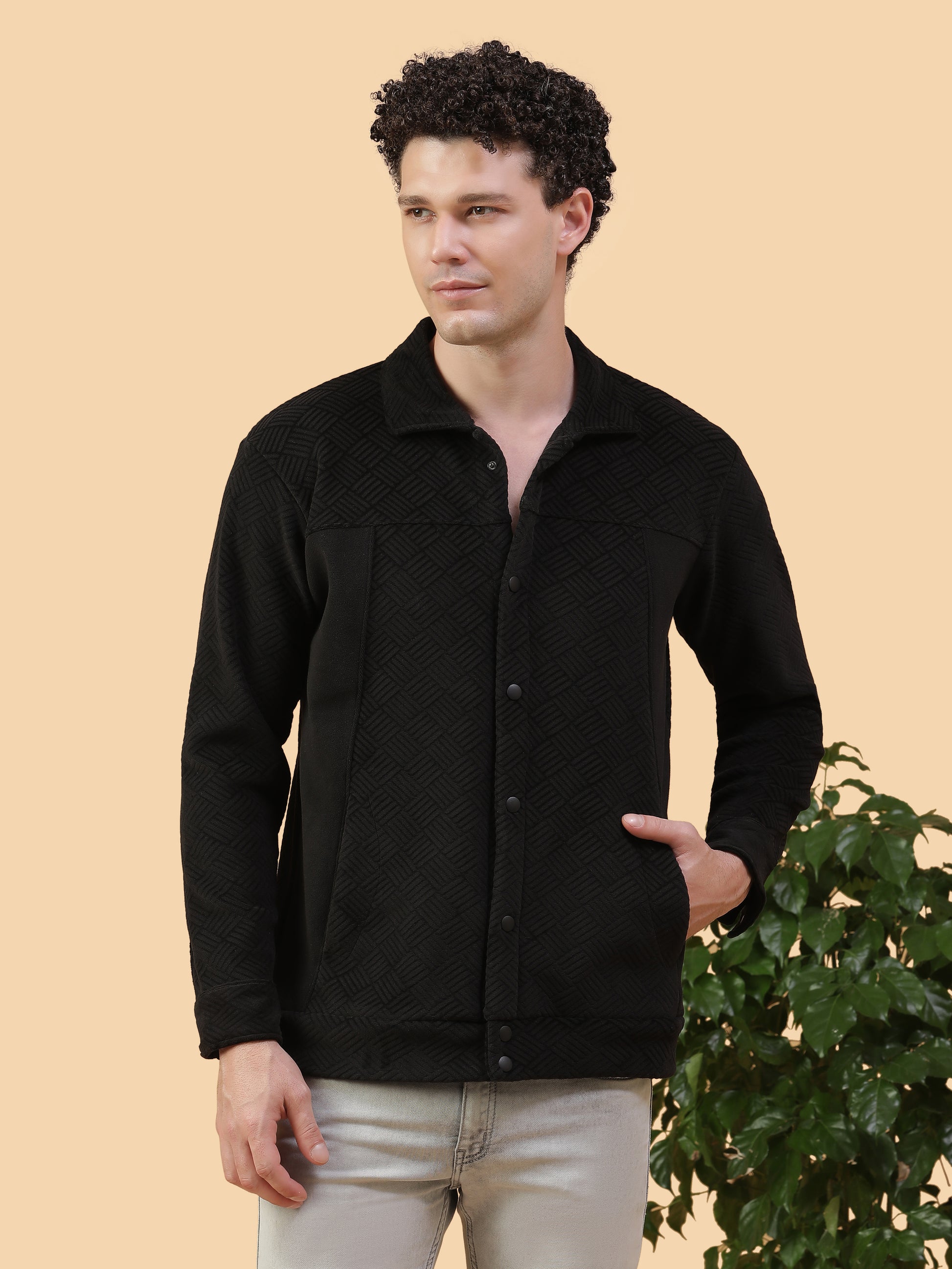 Kiza Men’s Classic Black Textured Shacket