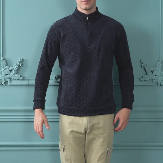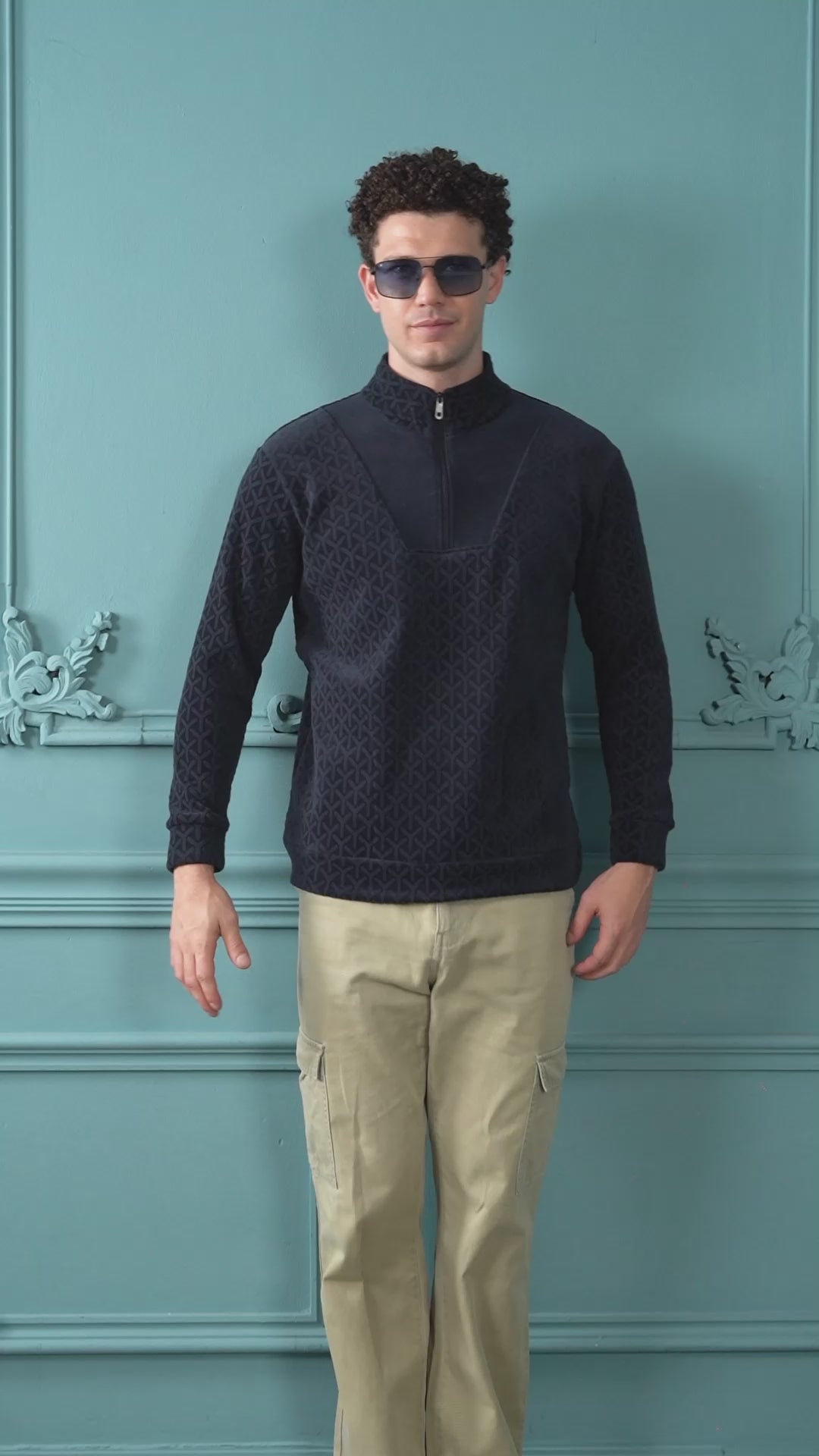 Elevate your casualwear with the Kiza Men’s Navy Textured Shacket Half-Zip Pullover — a perfect blend of comfort, structure, and modern elegance. Crafted from luxuriously soft bonded fabric with an intricate embossed texture, this pullover delivers warmth and breathability in one refined package. The half-zip high-neck design adds a contemporary twist, making it versatile enough for both leisure and casual outings. Whether layered over a tee or worn on its own, it promises effortless sophistication and day-long comfort.