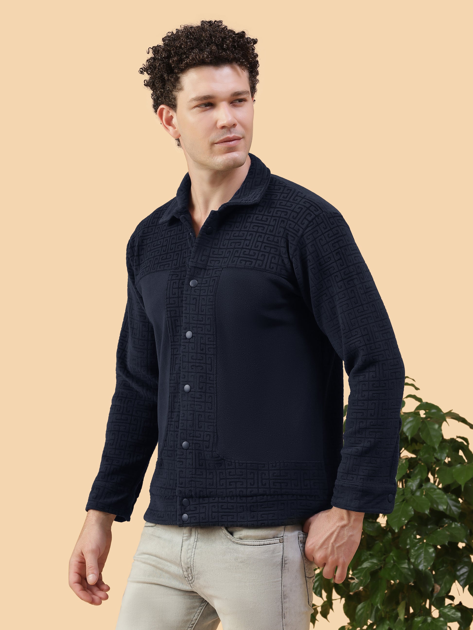 Redefine comfort and elegance with the Kiza Men’s Navy Textured Jacket, designed to bring a polished edge to your everyday style. Featuring a luxurious bonded fabric texture with a subtle geometric pattern, this jacket exudes sophistication while ensuring unbeatable comfort. The stretchable, breathable fabric makes it perfect for layering during cool evenings or relaxed weekends. A versatile wardrobe staple that transitions effortlessly from casual outings to laid-back indoor wear.