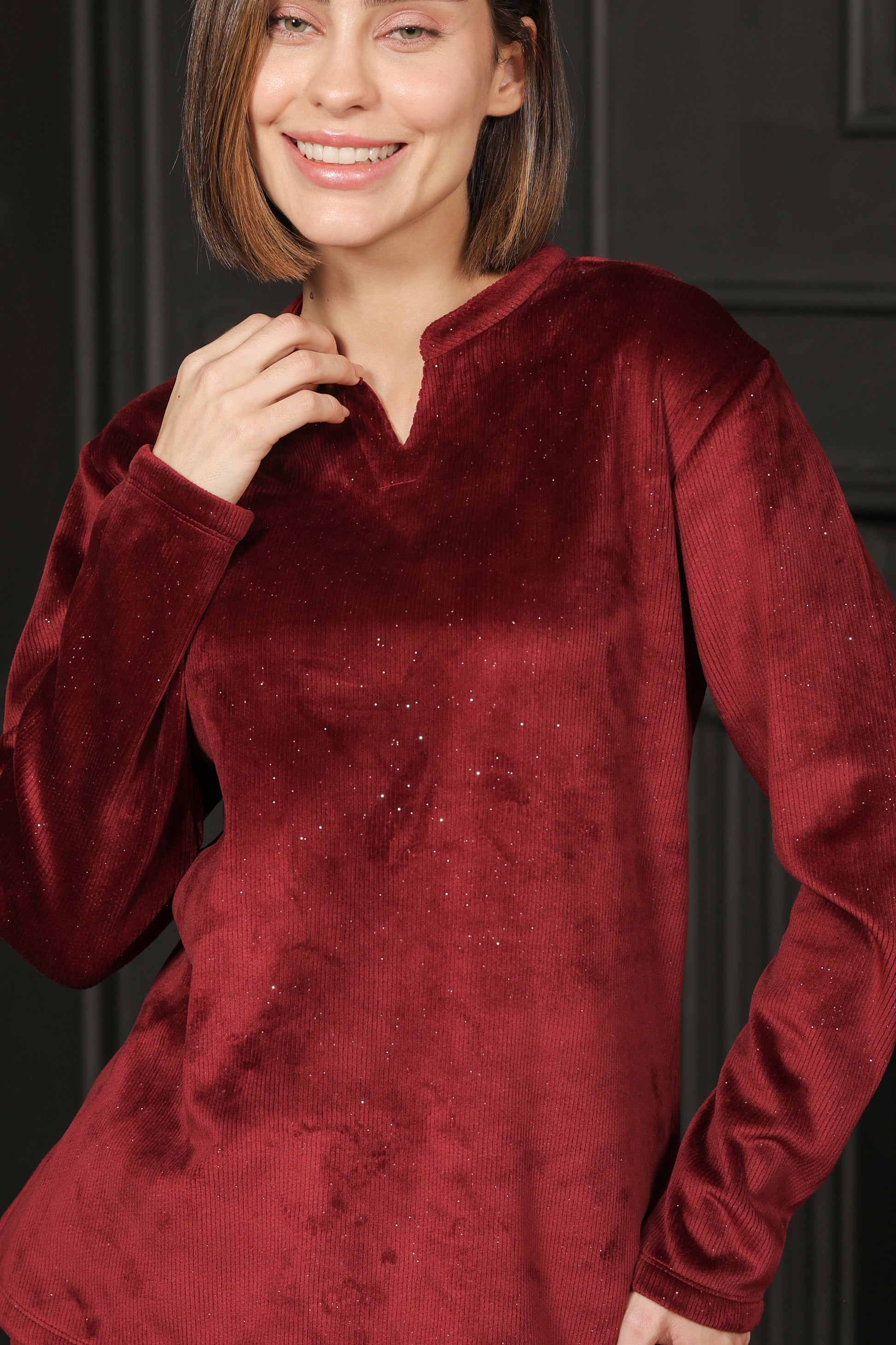 Indulge in effortless luxury with the Kiza Women’s Chanel Coudary Night Suit, styled in an opulent maroon shade. This elegant two-piece set combines timeless charm with maximum comfort, making it the perfect choice for both lounging and sleeping. The plush Chanel Coudary fabric offers a velvety finish, ensuring cozy warmth and a soft caress against the skin. Ideal for unwinding after a long day or spending relaxed weekends in chic comfort.